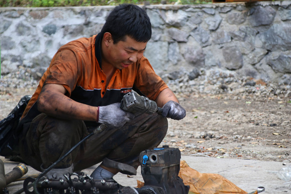 為了全力配合前勤安全生產(chǎn)工作,加班到最后的物資供應部、檢修部、加油站的同事們更是全力以赴:烈日下的檢修工認真檢修每個(gè)零件,滿(mǎn)臉油漬遮不住修理成功后的笑容;加油員竄梭在各加油口,縮短車(chē)輛加油的等待時(shí)間,即使漫天的大雨阻擋不住他們的腳步;提前備下充足的物資,想駕駛員之所想,物資部的員工更是貼心服務(wù),記錄隨人走確保出庫領(lǐng)取記錄不遺漏;當最后一批收尾員工吃完晚餐時(shí)就已經(jīng)是九多點(diǎn)鐘了,在很多人已經(jīng)進(jìn)入夢(mèng)鄉時(shí),食堂員工還要做最后的整理工作。沒(méi)有華麗的修飾,樸實(shí)、勤勞的他們?yōu)槁糜瓮痉瞰I自我。