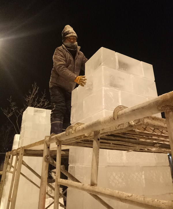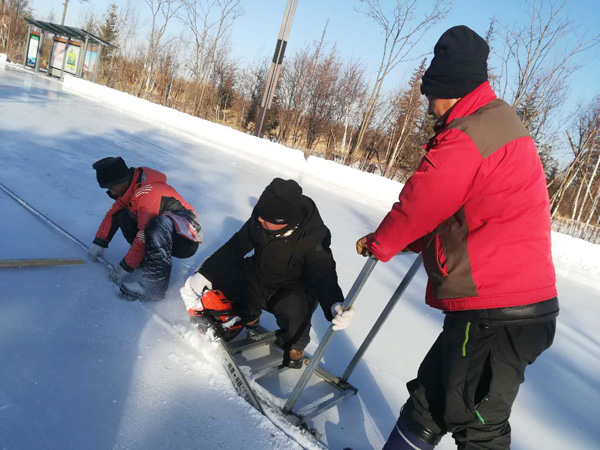 為保障工期質(zhì)量,運營(yíng)一線(xiàn)抽調了由后勤、檢修等部門(mén)20余人組成的項目施工小組,連續20日,每日從早7:00到晚22:00全員加班加點(diǎn),甚至通宵達旦,克服了人力不足、經(jīng)驗欠缺、沒(méi)有專(zhuān)業(yè)設備等重重困難,員工們日以繼夜灑水造冰、造雪做雕,自主研制磨冰機、改裝切冰儀、造雪機水箱、雪墻磨具、象棋磨具等設備。因工程需到湖中取冰,在切割冰塊過(guò)程中,冰冷的水花濺滿(mǎn)了員工的鞋和衣服,零下20度的氣溫下,寒風(fēng)掃過(guò)立刻被凍成“冰人”,個(gè)別員工腳和臉部被凍傷,但大家無(wú)一人抱怨、無(wú)一絲退縮,披星戴月,咬緊牙關(guān),高質(zhì)量如期完成了長(cháng)白山大街“冰光大道”全程500米、1.5公里人行雪道、300余個(gè)雪人及彩燈亮化等工作任務(wù),達到了“少投入,多產(chǎn)出,控規模,重效果”的“粉雪節”活動(dòng)初衷。施工期間,公司機關(guān)黨支部每日到工地為員工送熱姜湯和茶蛋等食物,慰問(wèn)一線(xiàn)員工,緩解作業(yè)疲勞,讓員工們感受到了企業(yè)“一家親”的濃厚氛圍。
